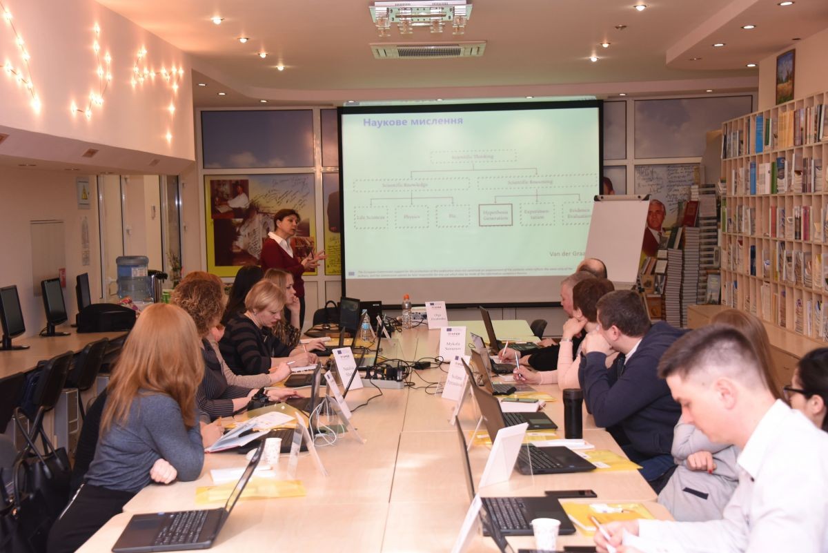 Згодом учасники першої групи продовжили роботу в конференц-залі імені Василя Сухомлинського, де розглянули екосистеми GO-LAB та довідалися про незалежне дослідницьке середовище (ILS) з точки зору студента, а інша група учасників зосередила увагу на оцінці результатів навчання.