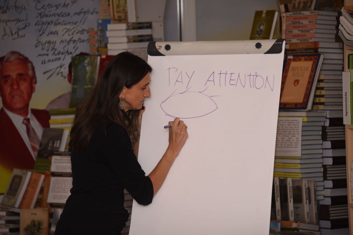 Після перерви на каву учасники тренінгів мали нагоду відвідати презентацію виставки живопису члена Національної спілки художників України, старшого викладача кафедри мистецьких дисциплін і методик навчання Романа Мотузка «Мальовничий Переяслав», що вже кілька днів експонується в читальній залі університетської бібліотеки на І поверсі ІІ корпусу.