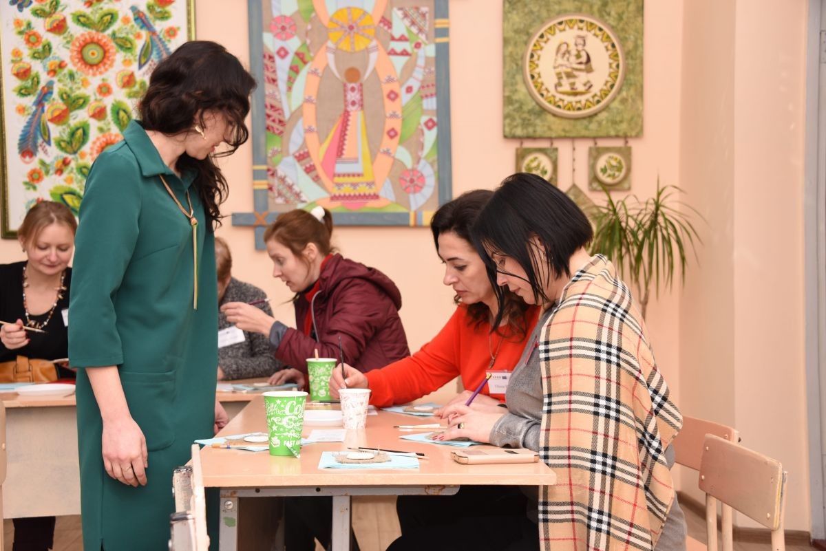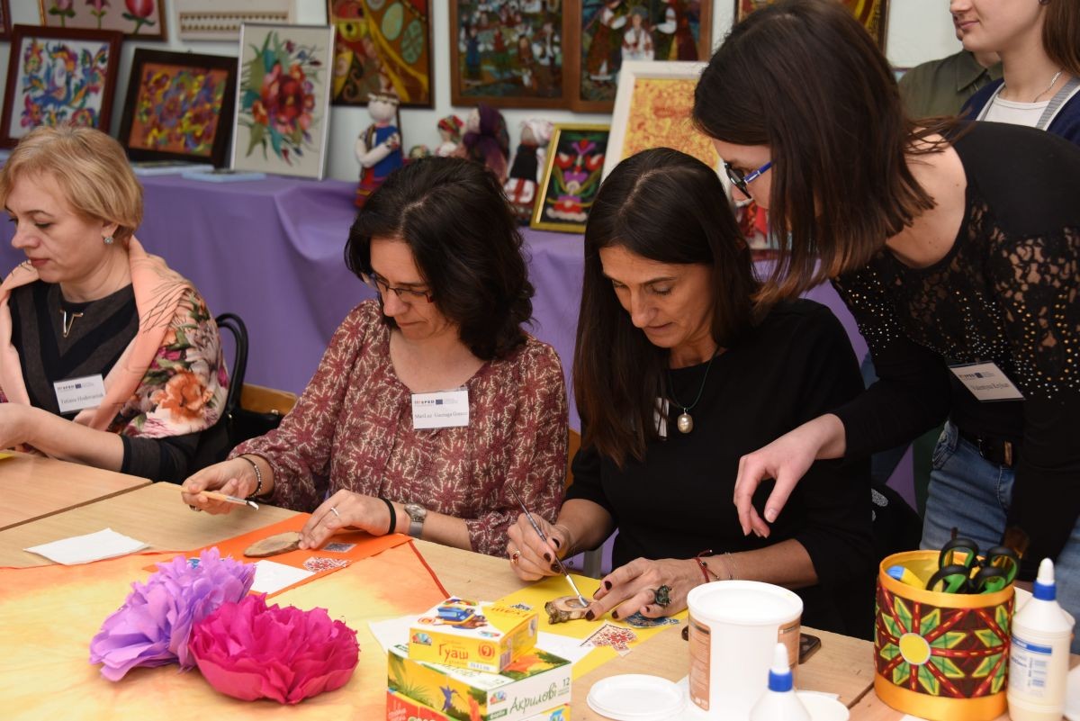 Після пообідньої перерви на каву учасники секцій долучилися до майстер-класів з декоративного розпису та мініатюри «Український сувенір» та «Український колорит», які проводили викладачі кафедри мистецьких дисциплін і методик навчання Заріна Шокірова, Олена Шпитальова а також кандидат педагогічних наук Оксана Смірнова.