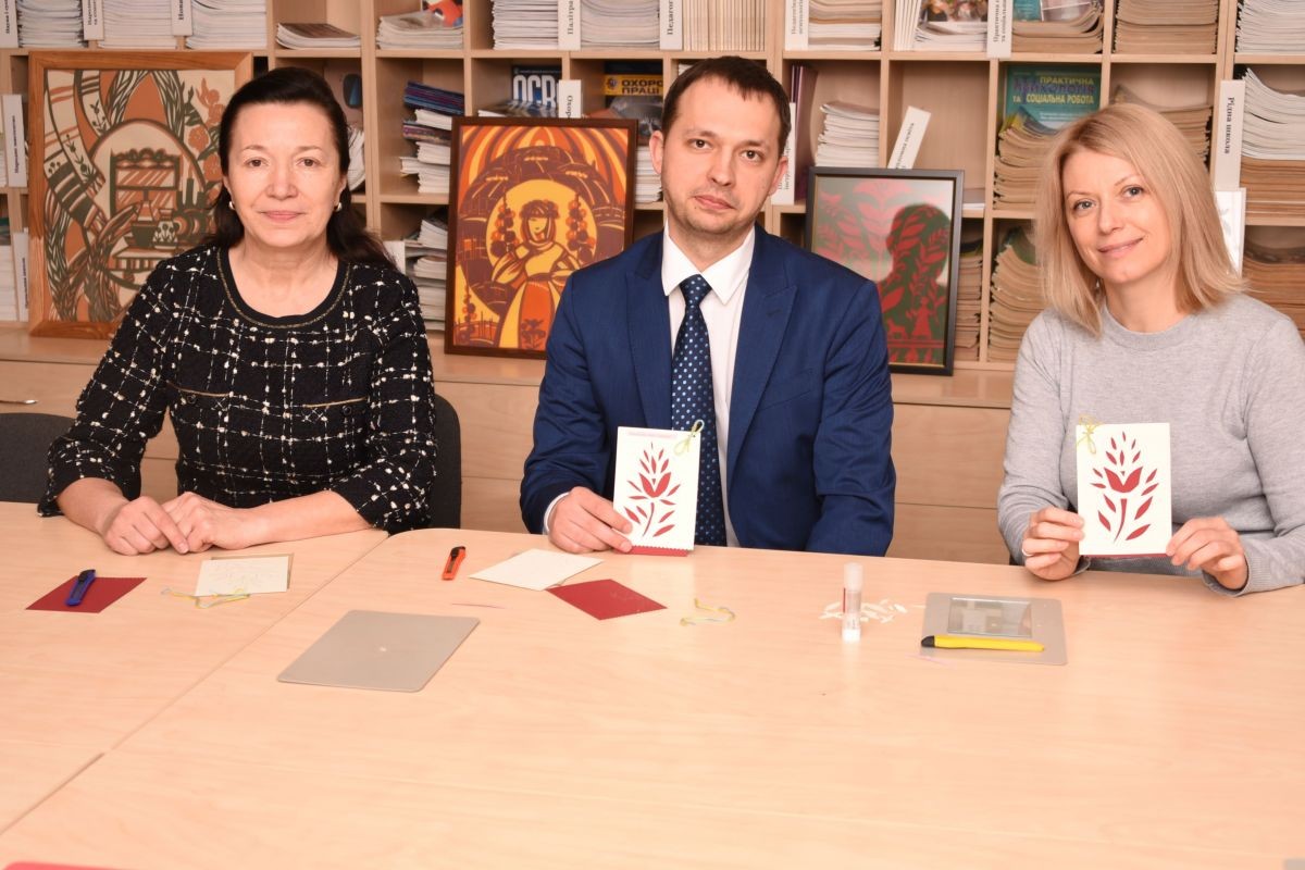 Сповненим оригінальності був майстер-клас із традиційної української витинанки «Етнічна листівка», який для гостей провела кандидат педагогічних наук, доцент кафедри мистецьких дисциплін та методик навчання Ольга Стрілець зі своєю донькою Мартою.