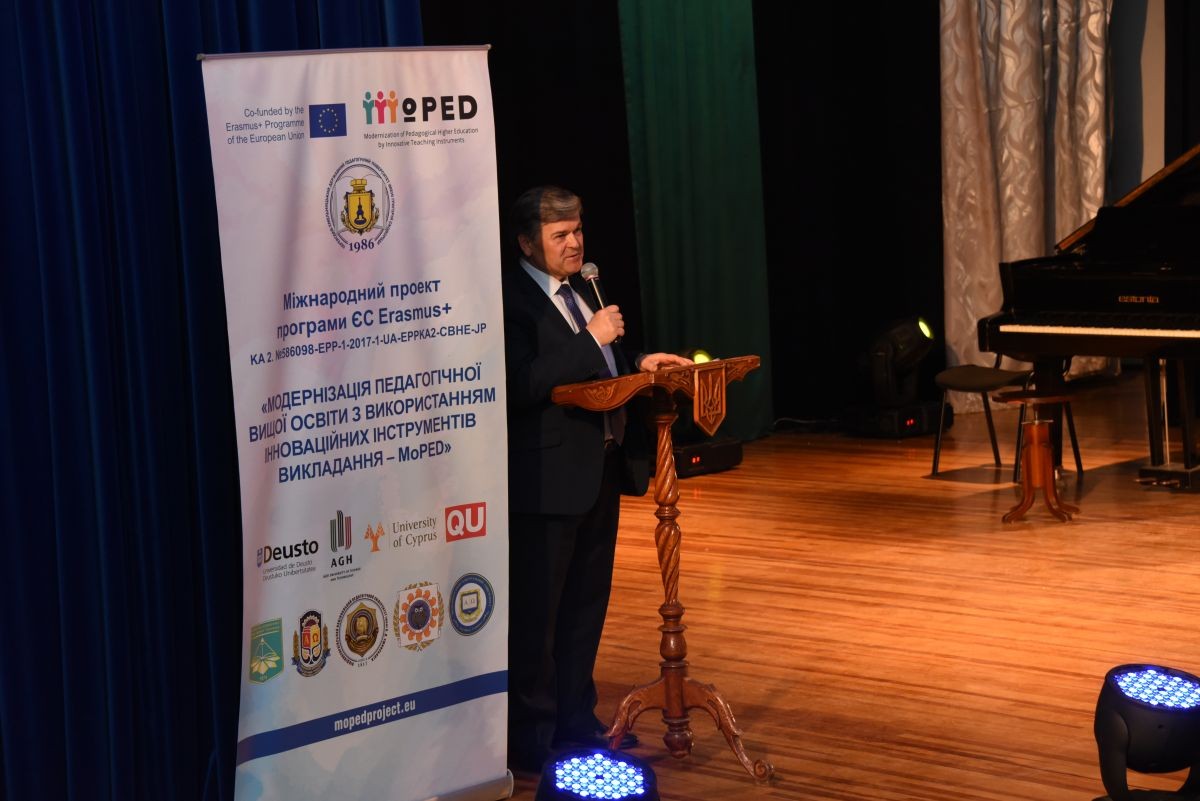Користуючись нагодою, керівник Відділу міжнародних відносин ДВНЗ «Переяслав-Хмельницький державний педагогічний університет імені Григорія Сковороди» Оксана Ковтун запросила всіх охочих до співпраці в рамках міжнародного проекту програми ЄС Erasmus + KA2 № 586098-EPP-1-2017-1-UA-EPPKA2-CBHE-JP «Модернізація педагогічної вищої освіти засобом використання інноваційних інструментів викладання – MoPED», адже в межах цієї співпраці на базі педагогічного факультету сковородинівської альма-матер передбачається: обмін професорсько-викладацьким складом з метою організації науково-дослідної роботи, проведення спільних конгресів, конференцій, коучингів; проведення стажувань, сертифікованих тренінгів та робочих семінарів для педагогів закладів загальної середньої та вищої освіти з метою підвищення їхньої кваліфікації; залучення до участі у форумах, круглих столах тощо з метою розвитку інклюзивної освіти; надання відповідних психолого-педагогічних консультацій для підтримки ресурсних центрів інклюзивної освіти; колективна робота над розробкою методичного та інформаційного забезпечення навчального процесу з використанням інноваційних технологій та інструментів навчання та підготовка і видання підручників, навчальних посібників, інших методичних матеріалів, у тому числі в електронному форматі.